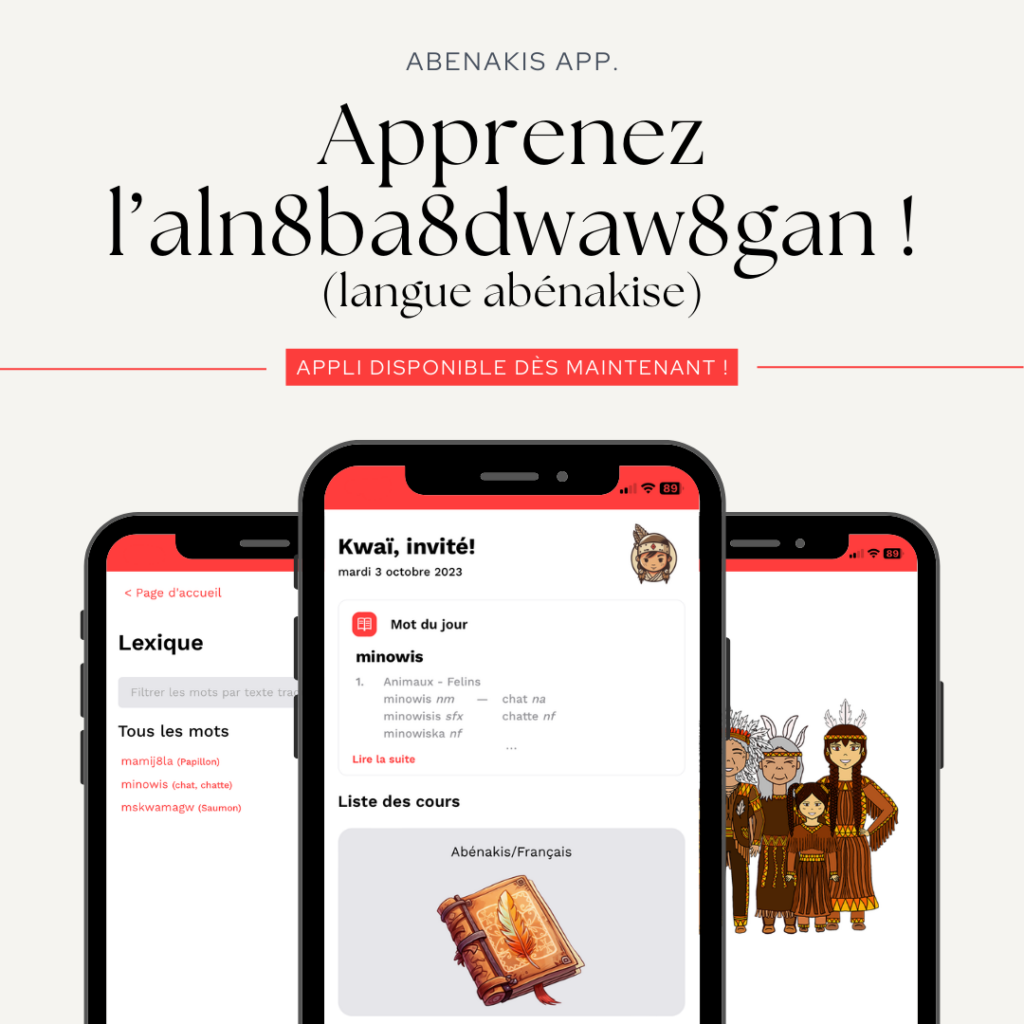 Pour plus d’informations sur le projet « Neg8nsosakilal8mow8gan: la voix de nos ancêtres » ou encore pour télécharger l’application mobile, visitez le https://abenakis.app. La Nation abénakise est fière de contribuer à la revitalisation de sa langue ancestrale et invite toutes les personnes intéressées à découvrir et à apprendre l’aln8ba8dwaw8gan à télécharger l’application mobile dès maintenant.